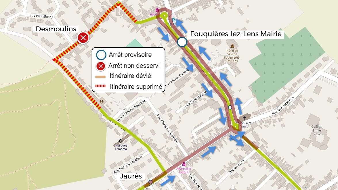 | L'arrêt AUCHY-LES-MINES - Mairie est reporté à l'arrêt AUCHY-LES-MINES - Jean Jaurès |