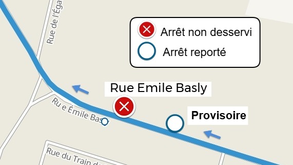 | L'arrêt Rue Emile Basly est déplacé à l'arrêt PROVISOIRE se situant avant au niveau du Tabac Presse |