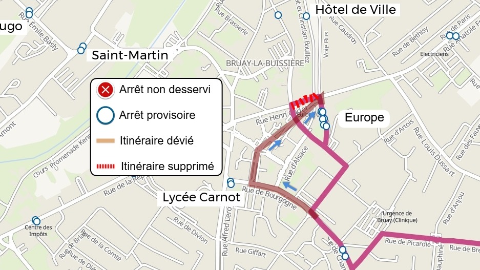 | L'arrêt Centre des Impôts est reporté à l'arrêt Lycée Carnot |