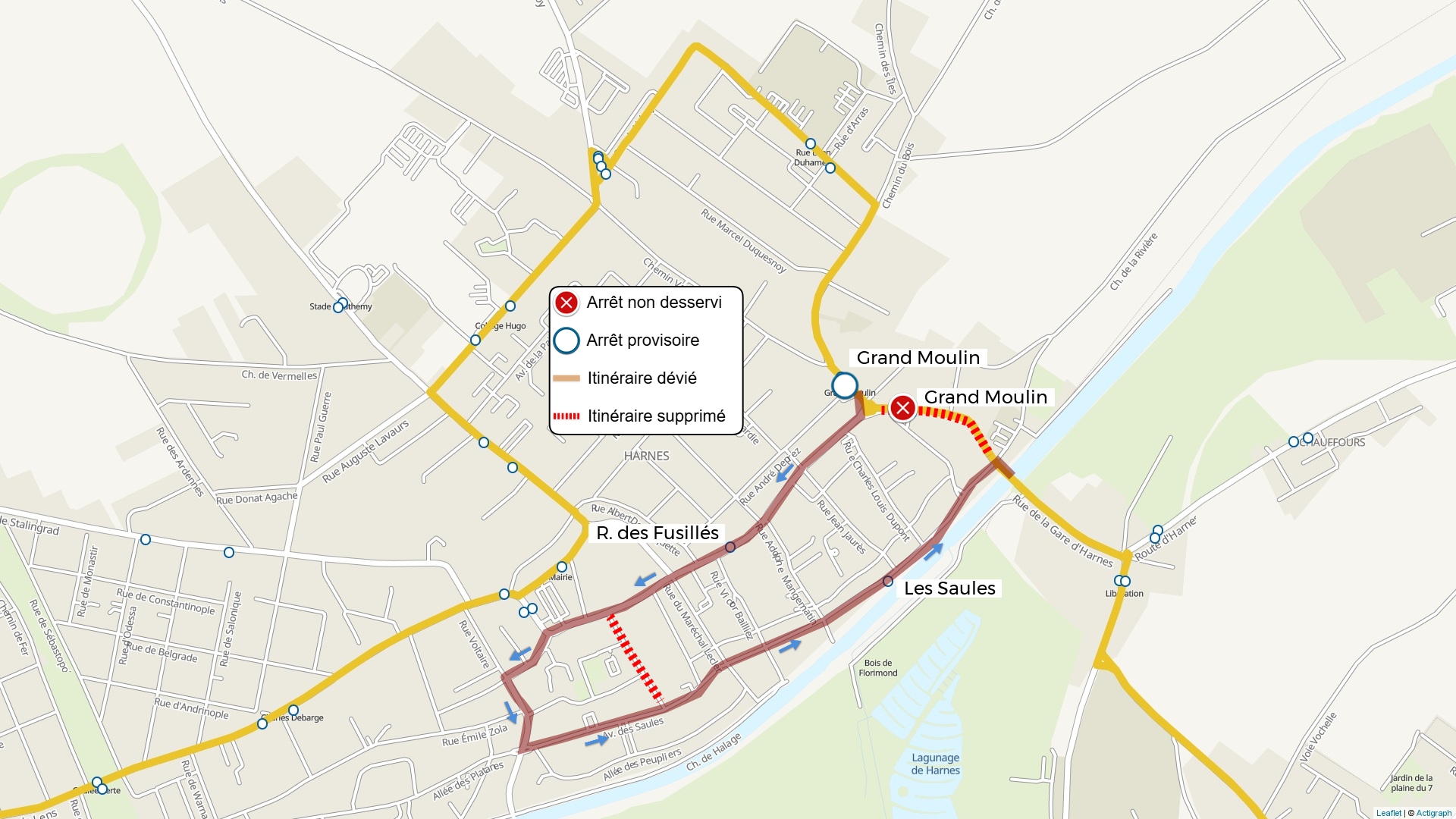 | L'arrêt HARNES - Athènes est déplacé à l'arrêt PROVISOIRE (Rue du Chemin de Fer) | |